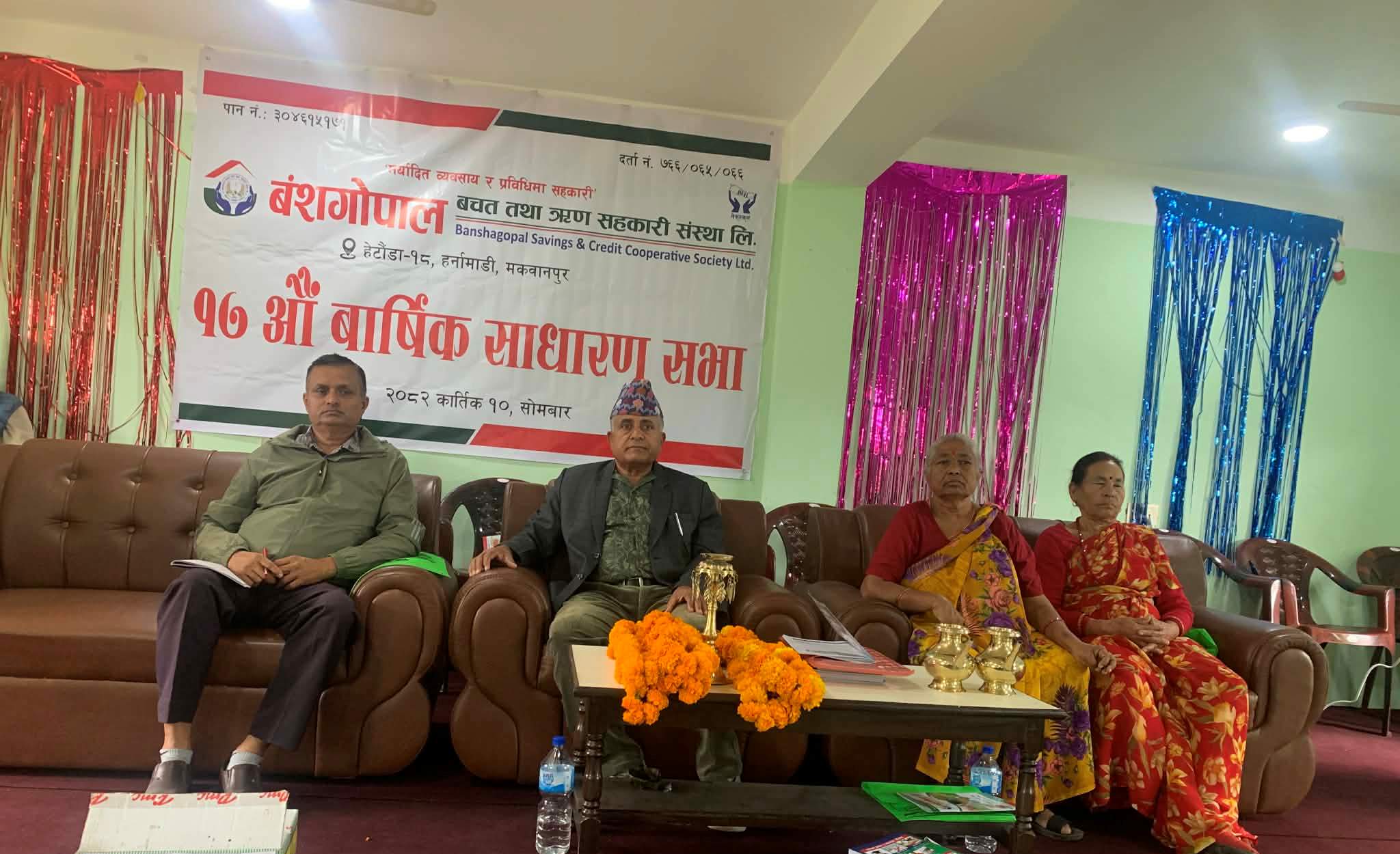 कात्तिक १०, हेटौंडा । हेटौंडा उपमहानगरपालिका वडा नं.१८ मा रहेको वंशगोपाल बचत तथा ऋण सहकारी संस्थाले १३ करोडभन्दा बढीको कारोबार गर्ने लक्ष्य लिएको छ । सहकारीको आज सम्पन्न १७ औं बार्षिक साधारणसभामा कोषाध्यक्ष इमान बहादुर थापाले कोषाध्यक्षको प्रतिवेदन पेश गर्दै आगामी आर्थिक वर्ष २०८२/०८३ मा सहकारीले १३ करोड ४१ लाख ९७ हजार ९ सय ६७ रुपैयाँको कुल कारोबार गर्ने लक्ष्य लिइएको जानकारी दिनुभयो ।