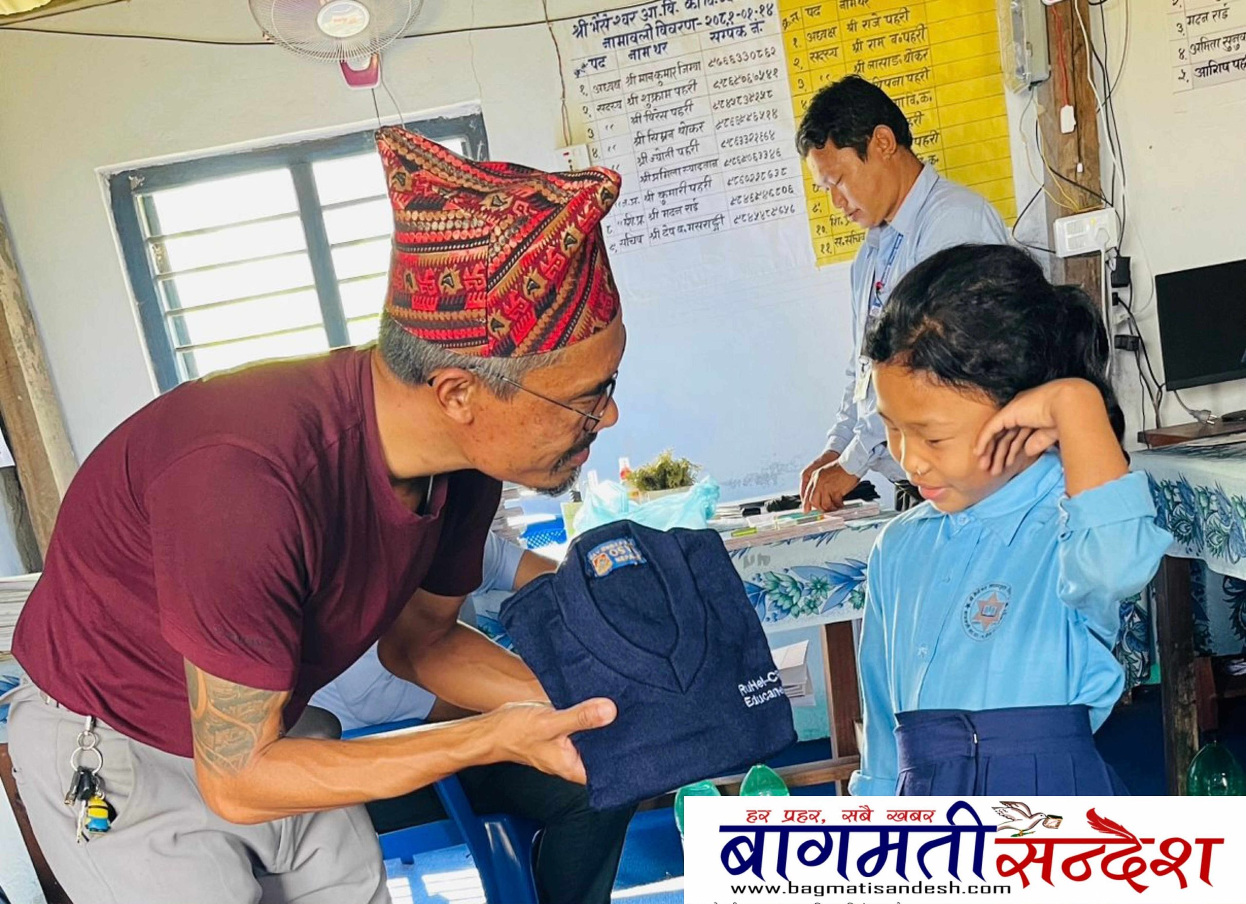 बागमती: मकवानपुरको बागमती गाउँपालिका वडा नम्बर १, भैंसेस्थित भैंसेश्वर आधारभूत विद्यालयका विद्यार्थीहरुलाई न्यानो कपडा र शैक्षिक सामग्री वितरण गरिएको छ। मंगलबार विद्यालयमा एक कार्यक्रमका बीच ग्रामीण असहाय बालबालिका सामुदायिक पुनर्स्थापना केन्द्रले विद्यालयका ४१ जना विद्यार्थीहरुलाई न्यानो कपडा र शैक्षिक सामग्री वितरण गरेको विद्यालयका प्रधानाध्यापक देव मसराङ्गी मगरले बताउनुभयो ।