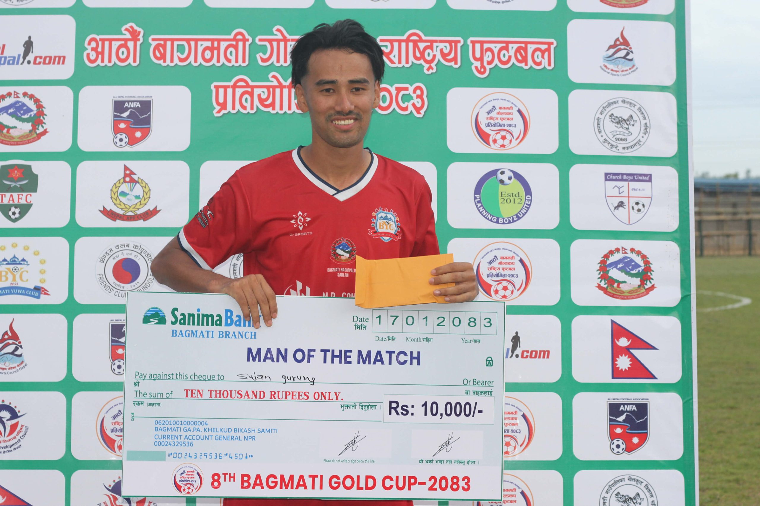 बागमतीको जीतमा सुजन गुरुङले ३१ औं मिनेटमा